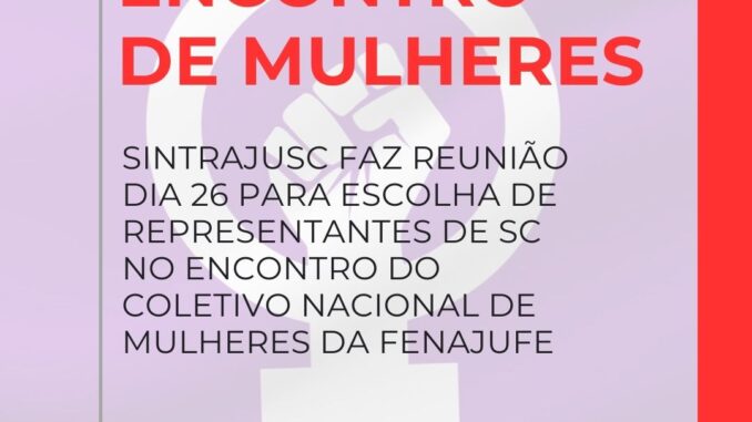 Destaques Sintrajusc fará reunião dia 26 para escolha de representantes de SC no Encontro do Coletivo Nacional de Mulheres da Fenajufe