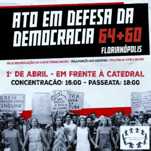 O Ato que vai reivindicar a defesa dos direitos da classe trabalhadora, a punição aos golpistas e o fim da tutela militar é organizado pelo Coletivo Catarinense Memória Verdade e Justiça Derlei de Luca junto com lideranças do movimento social, sindical e políticas. A partir das 18 horas, está agendada uma caminhada por pontos de resistência à ditadura, na Capital.