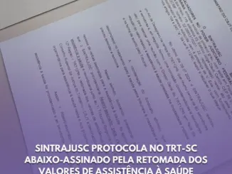 Sintrajusc protocola no TRT-SC Abaixo-assinado pela retomada dos valores de assistência à saúde