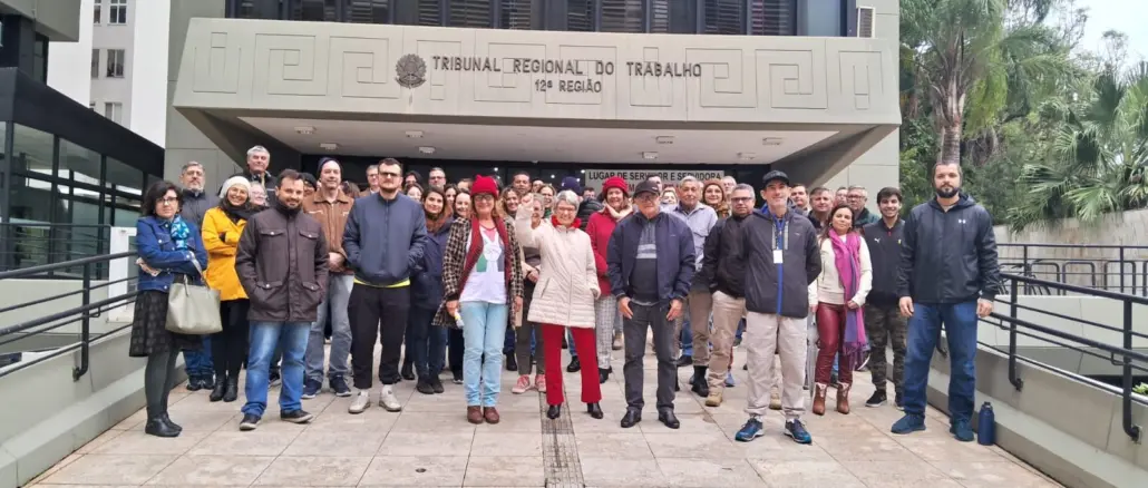 Cerca de 80 servidores e servidoras participaram hoje (9) do Ato de Desagravo na rampa do TRT-SC contra a redução … Continue lendo Ato e reunião com diretor geral do TRT-SC nesta terça mostram indignação pela redução do auxílio-saúde