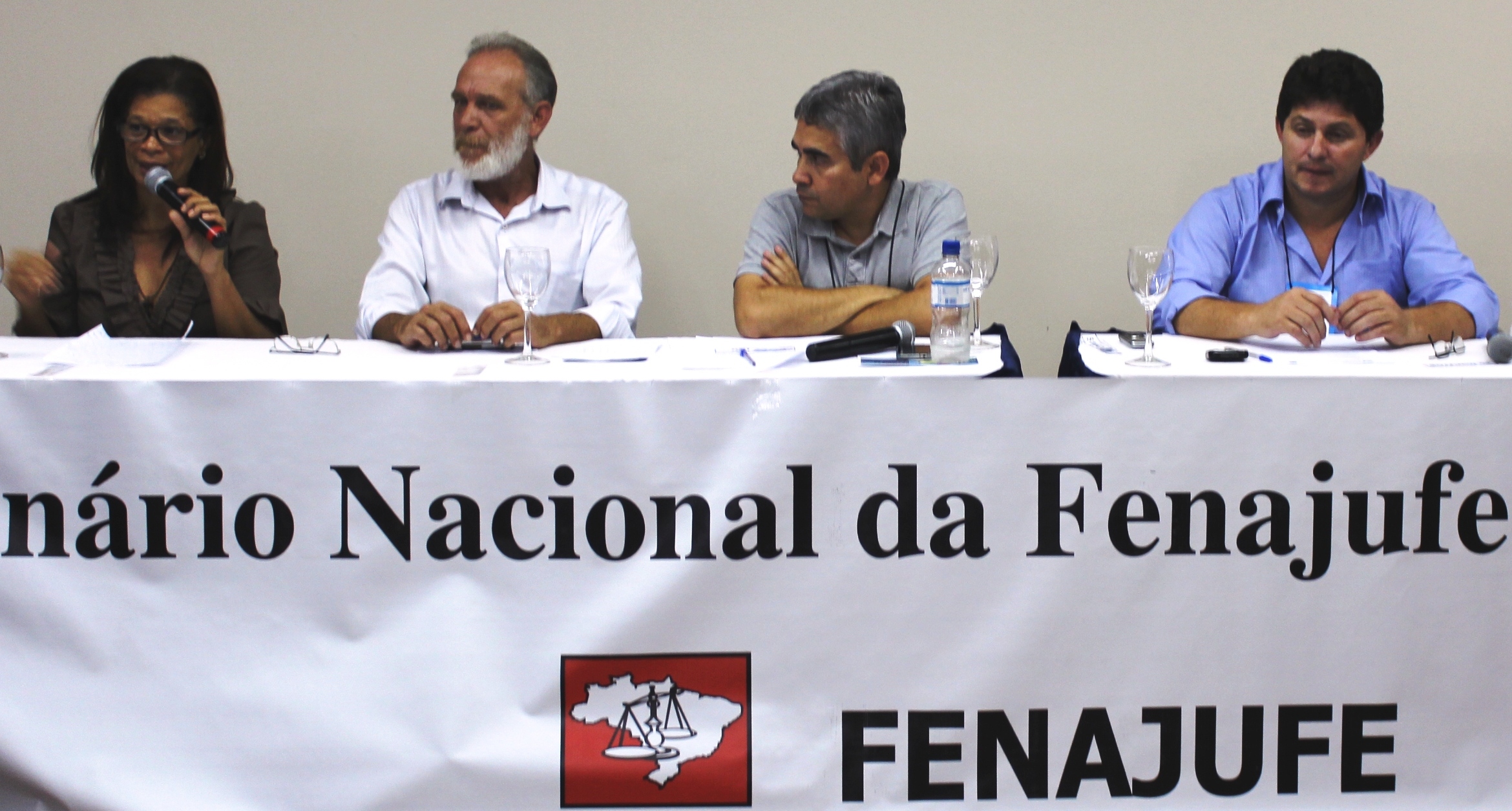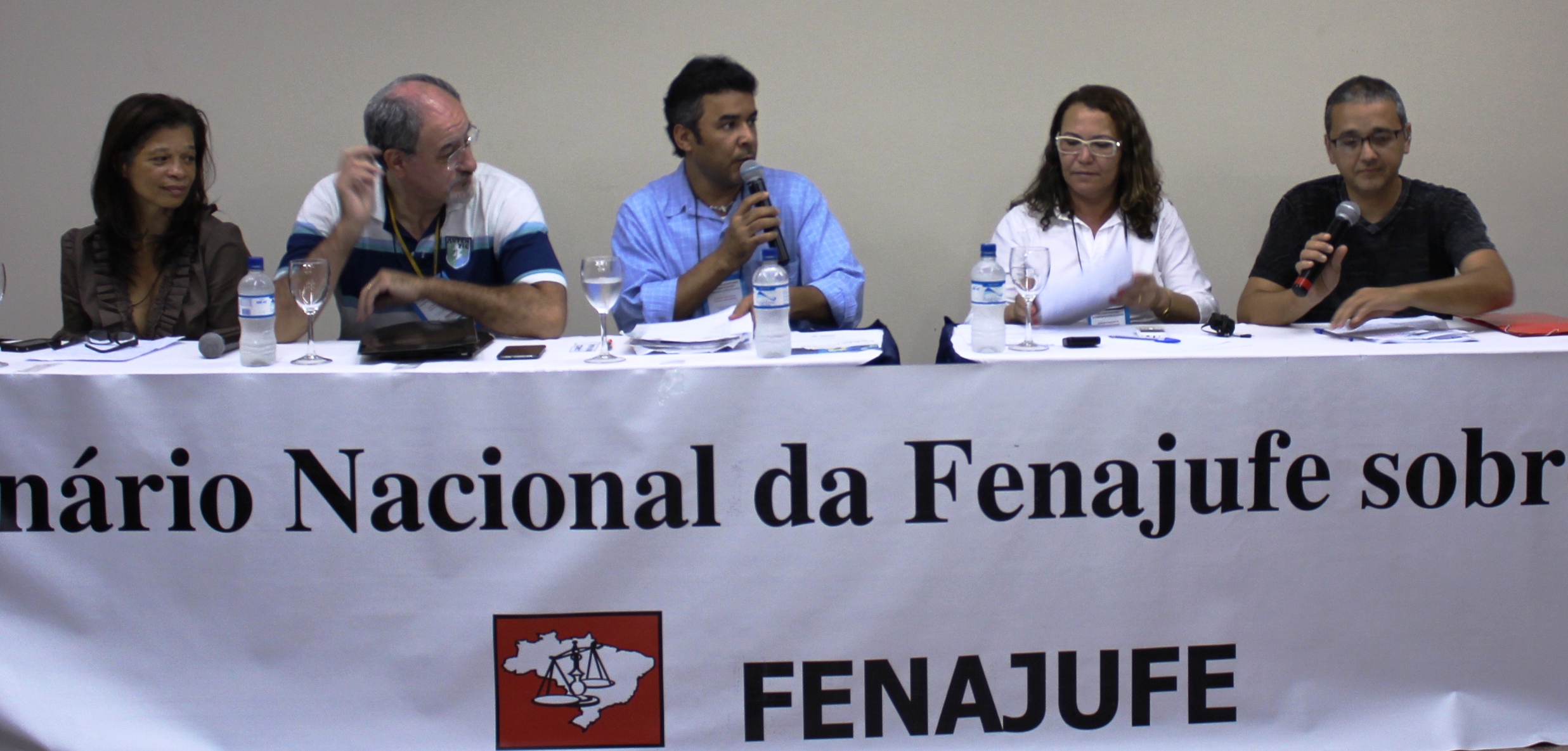 A primeira mesa de debates, conduzida pelos coordenadores da Fenajufe, Roberto Ponciano e Saulo Arcangeli, teve a participação de José Loguércio (aposentado do TRT da 4ª Região e mestre e doutor em Ciência Política), Celso Luiz Sá Carvalho (coordenador do Sindicato dos Técnicos da Universidade Federal do Rio Grande do Sul e ex-coordenador da Fasubra) e Maria Lucia Fattorelli Carneiro (auditora da Receita Federal durante 29 anos e coordenadora do movimento Auditoria Cidadã da Dívida, atuou na Comissão para a Auditoria Integral do Crédito Público do Equador, a convite do presidente Rafael Correa).
