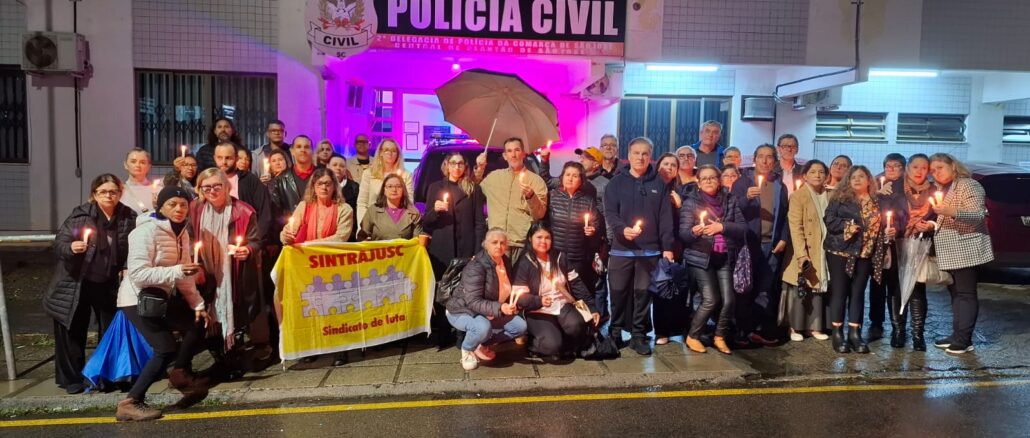 Na noite de sexta-feira (25), o SINTRAJUSC realizou Ato com Velas em frente à Central de Plantão Policial (CPP) de … Continue lendo Sintrajusc fez Ato com Velas pelo colega Cezar Mauricio Ferreira