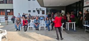 O Sintrajusc organizou Ato em Memória do colega Cezar Mauricio Ferreira nesta segunda-feira, na rampa do TRT-SC, com a participação de cerca de 70 pessoas. O ato exigiu apuração rigorosa, rápida e transparente das circunstâncias da morte de Cezar, ocorrida no dia 19 de julho, e defendeu a aprovação do projeto de lei denominado Cezar Mauricio Ferreira, que estabelece diretrizes para a atuação dos agentes de segurança pública do Estado de Santa Catarina em abordagens a indivíduos que apresentem sinais de alteração do estado de consciência ou de comportamento, com vistas à adequada articulação entre as ações de segurança pública e os serviços de atenção à saúde. O projeto é de autoria do deputado estadual Rodrigo Minotto (PDT).