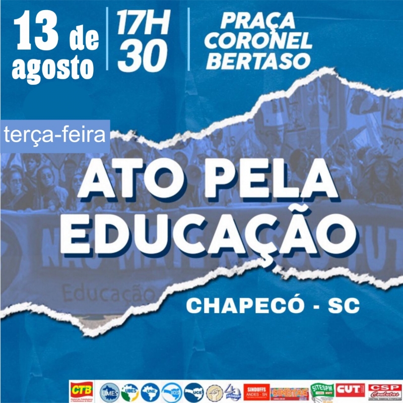 CHAPECÓ: aula pública, às 9h, e ato, às 17h30, na Praça Coronel Bertaso